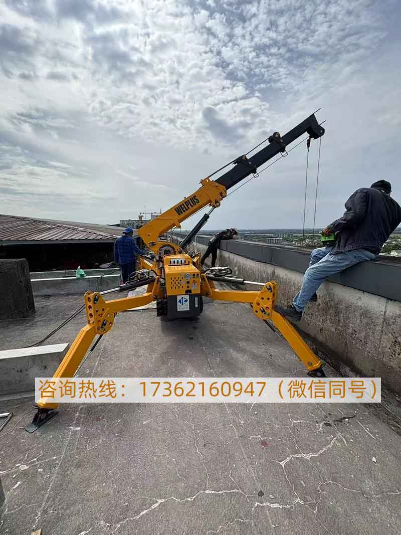 1.2噸蜘蛛吊車是一款專為狹窄空間和復(fù)雜工況設(shè)計的輕型起重設(shè)備,結(jié)合了蜘蛛式底盤的穩(wěn)定性和吊車的起重能力,自重僅有1.4噸,特別適合在樓頂施工使用。其緊湊的設(shè)計和出色的機動性使其成為現(xiàn)代輕型起重作業(yè)的理想選擇。